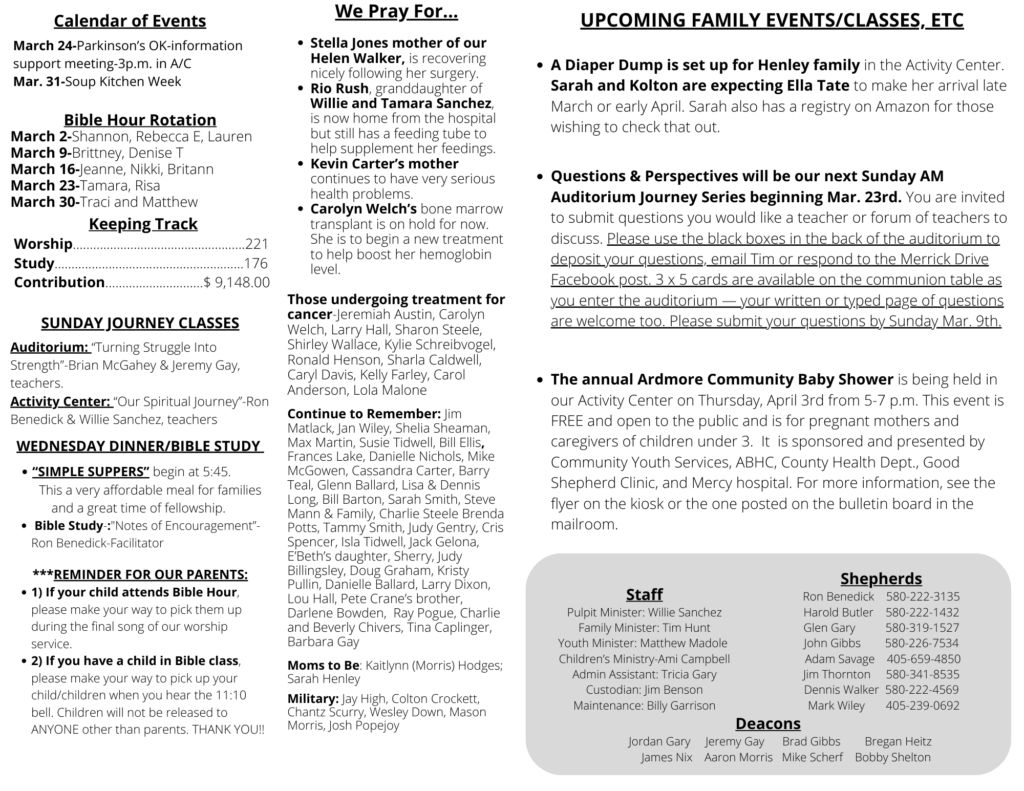 Weekly Bulletin 04-27-2023 Bulletin ByTricia Gary April 27, 2023 Cyan White Simple Medical Center Bi-Fold Brochure-53 (dragged) 2