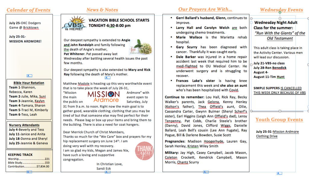 Weekly Bulletin 7-09-2023 bulletin ByTricia Gary July 6, 2023 Cyan White Simple Medical Center Bi-Fold Brochure-88 (dragged)